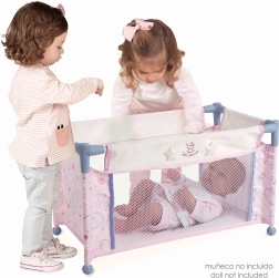 La Culla da Viaggio per Bambole Gala è un complemento affascinante e pratico per ogni cameretta, ideale da portare in viaggio. Fa parte della collezione del 2023, caratterizzata da una palette in rosa e bianco con accenti di blu e temi sportivi.
