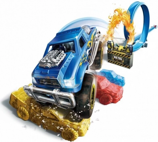 Goditi gare adrenaliniche con una pista acrobatica lunga 2 m che, grazie al potente lanciatore, spara l'auto in metallo a velocità incredibili. Non mancano il loop a 360° e la rampa per salti sopra altre auto – ideale per i piccoli piloti che amano azione e acrobazie.