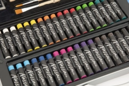 Ottima scelta per artisti, questo set di forniture artistiche è conservato in un'elegante valigetta di latta che contiene tutto il necessario per la vostra creatività in movimento.