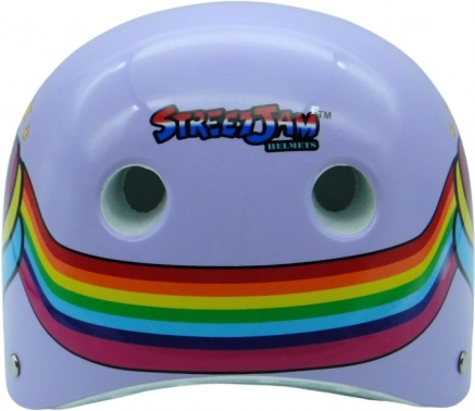 Casco viola dal design alla moda con motivo unicorno per bicicletta, skateboard e pattini in linea. Offre 9 prese d'aria, calotta polimerica rinforzata, schiuma EPS e certificazione EN 1078:2027 per una protezione affidabile.