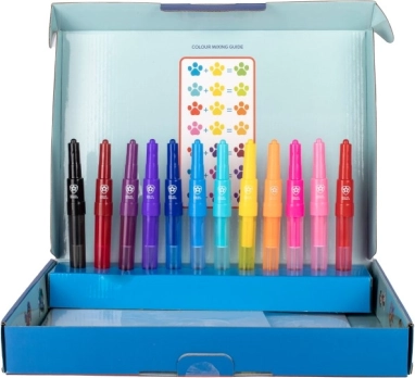 Grazie ai pennarelli spray, i bambini possono applicare il colore sulla carta in modo semplice, utilizzando esclusivamente gli stencil. Un’attività divertente e sicura che garantisce ore di gioco creativo. Il set contiene: