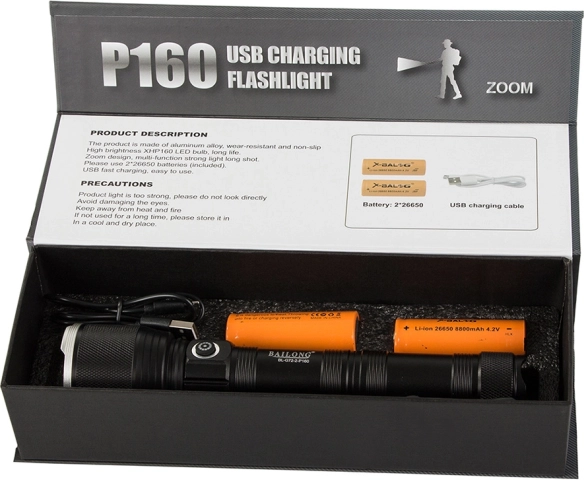 Questa torcia del rinomato marchio Bailong è ideale per le forze armate, l'esercito, i cacciatori o per uso domestico. È realizzata in alluminio aeronautico, garantendo resistenza e leggerezza. Grazie alla superficie antiscivolo, è facile da tenere in mano.