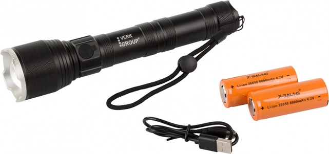 Ricaricare le batterie è facile grazie al cavo USB-C e il LED indicatore vi informa sullo stato della carica. La confezione include la torcia, due batterie ricaricabili e un cordino per appenderla.