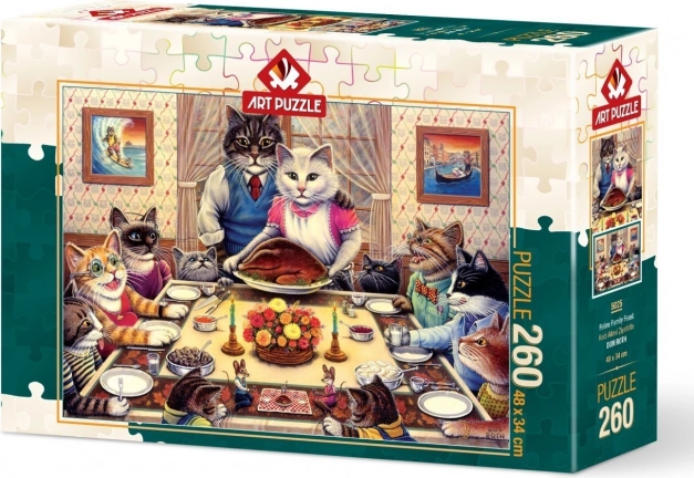 Scoprite un puzzle familiare di qualità con il motivo della famiglia di gatti, che garantisce ore di relax e divertimento. Grazie ai tagli precisi e al materiale robusto, i pezzi si incastrano perfettamente, rendendo il montaggio più facile anche per i più giovani appassionati. Una volta completato, otterrete un'immagine suggestiva di 48 × 34 cm, ideale da incorniciare o esporre.