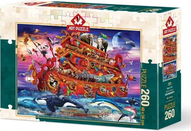 Godetevi momenti di tranquillità con il motivo dell'Arca di Noè, che piacerà agli amanti degli animali e a chi ama comporre in famiglia. Grazie alla lavorazione di qualità e ai tagli precisi, i pezzi si incastrano perfettamente e l'immagine finale risulta vivace e ricca di colori. Il puzzle da 260 pezzi è un'ottima scelta per allenare concentrazione, pazienza e motricità fine.