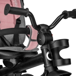 Due freni posteriori, cinture a 3 punti, barra di protezione ed elementi riflettenti aumentano la sicurezza. Il cestino, la borsa e il portabottiglia semplificano l’uso quotidiano.