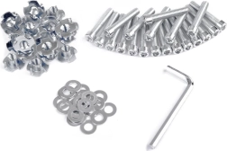 Il kit di montaggio include tutti i componenti metallici necessari, inclusi viti, rondelle e una chiave a brugola per un'installazione solida.