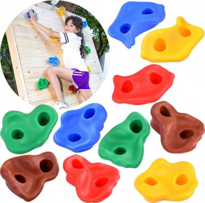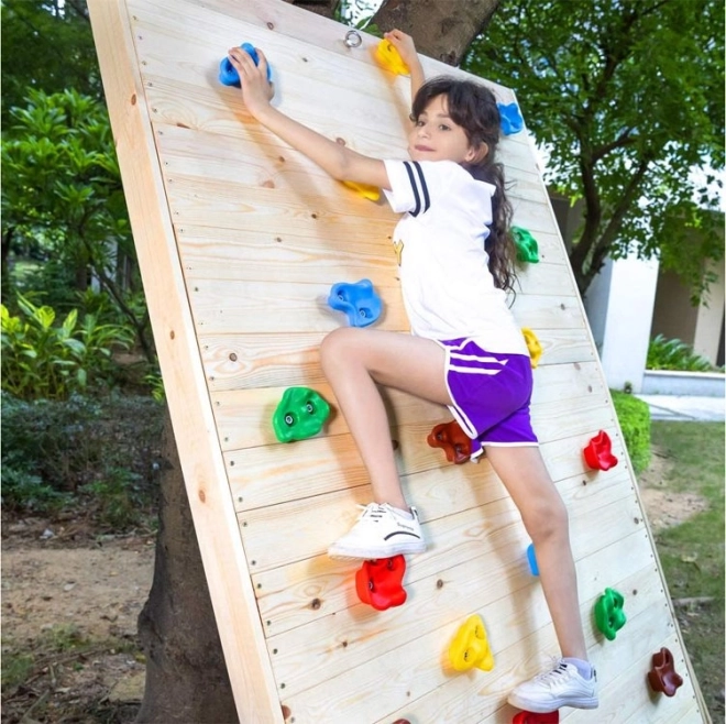Gli appigli sono disponibili in varie forme e colori vivaci, inclusi rosso, blu, verde, giallo e marrone, portando uno schema divertente di colori a qualsiasi parete da arrampicata.