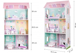 Questa eccezionale casa di bambole in legno offre infinite ore di divertimento per ogni bambina e le sue amiche. La casa è realizzata non solo con attenzione alla precisione, ma anche alla sicurezza dei bambini. La struttura è senza spigoli pericolosi e gli elementi pericolosi, e i colori utilizzati sono atossici.