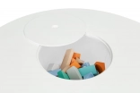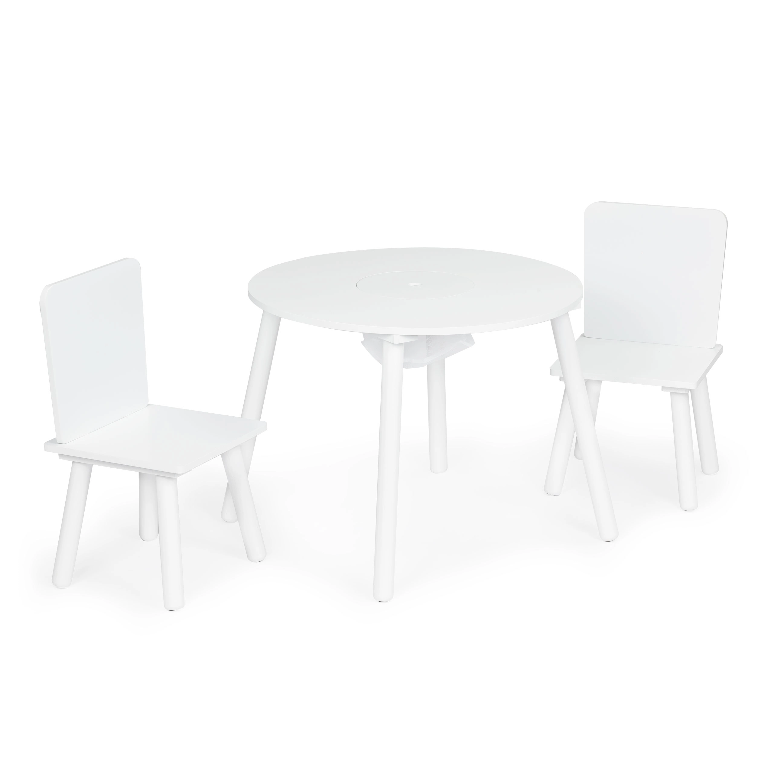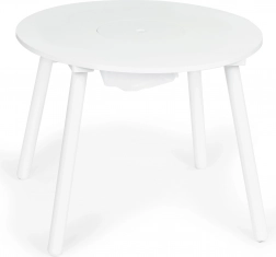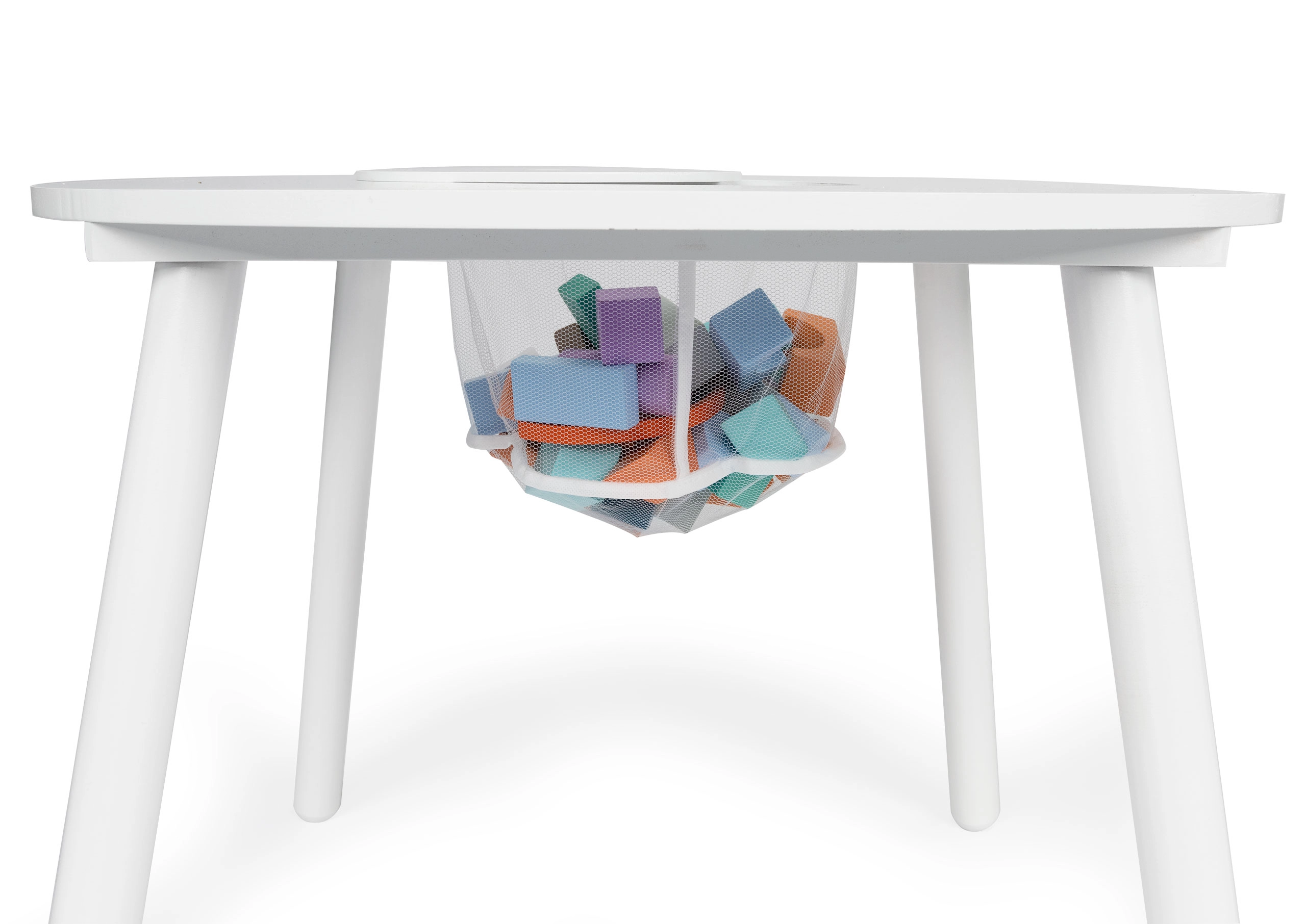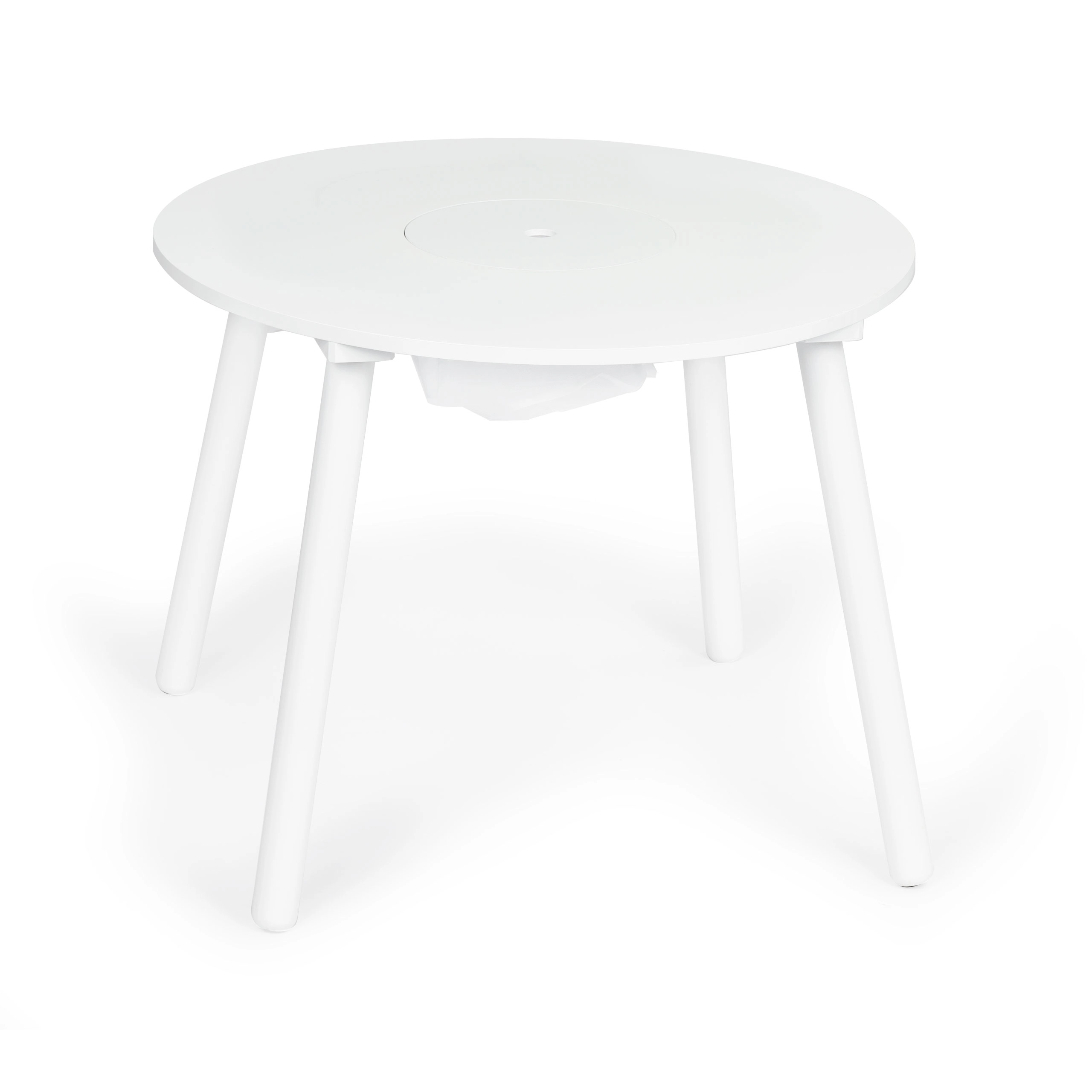 Il piano rotondo, ampio e senza spigoli vivi, offre spazio sufficiente per disegnare, costruire e fare merenda in modo sicuro e ordinato.