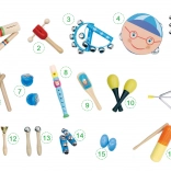 Questo ricco set di strumenti musicali è una scelta perfetta per i primi passi nel mondo della musica. Dalla tamburella alle maracas fino al flauto: i bambini allenano la coordinazione, potenziano la percezione uditiva e si divertono un mondo. La realizzazione in legno garantisce robustezza e lunga durata, mentre i suoni variopinti sostengono lo sviluppo del ritmo e della creatività.