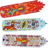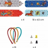 Crea la tua collezione di braccialetti da supereroe con il set DJECO. I bambini realizzeranno facilmente fino a 4 braccialetti originali grazie ai pezzi preforati, al semplice infilaggio dei cordoncini e alle istruzioni passo dopo passo. Materiali come cordoncini in camoscio e similpelle assicurano comfort e resistenza. Un'ottima attività creativa per bambini e per giocare insieme agli amici.
