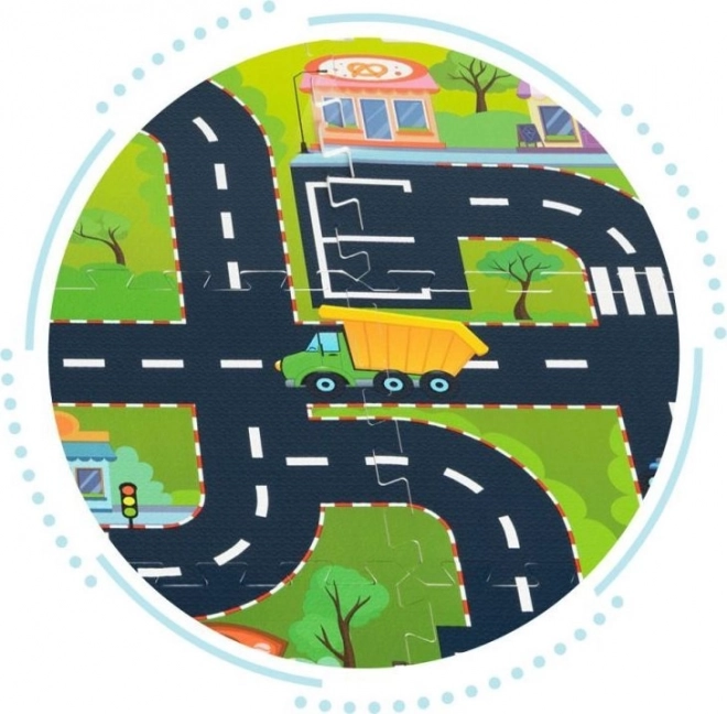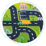 La stampa dettagliata di strade, incroci ed edifici stimola la fantasia e sviluppa la motricità e la percezione spaziale dei bambini.