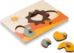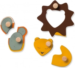 Il puzzle in legno Hauck Lion è progettato per un primo incastro sicuro e gioioso. I pezzi colorati con animaletti e sole hanno pratici pomelli che facilitano la presa, rafforzano la prensione e insegnano a inserire correttamente le forme nei rispettivi alloggi.