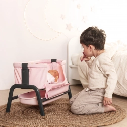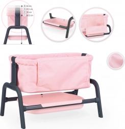 Elegante lettino rosa per bambole del marchio SMOBY nel design Maxi-Cosi Quinny, ideale per bambole fino a 38 cm. Offre 4 livelli di regolazione in altezza, una struttura stabile su 4 gambe e un pratico vano portaoggetti sotto il letto. Grazie ai bordI arrotondati e ai materiali resistenti e facili da pulire è perfetto per il gioco quotidiano e per prendersi cura del “bebè”.