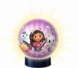Il 3D puzzleball luminoso dell'edizione Nachtlicht entusiasmerà tutti i piccoli e grandi fan dei puzzle e del mondo della Casa delle bambole di Gabby. Puoi montarlo seguendo l'immagine oppure seguendo i numeri sul retro dei pezzi: ideale per sviluppare pazienza, motricità fine e senso dello spazio.
