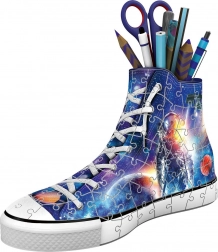 I 108 pezzi rigidi con grafica cosmica si uniscono in un accattivante modello a forma di sneaker. Una sfida perfetta per piccoli costruttori e per chi si avvicina ai puzzle 3D.