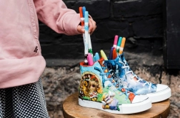 Dopo il montaggio, la sneaker funge da stabile portapenne per matite, pastelli e forbici. Un accessorio di stile per la stanza che mantiene la scrivania in ordine.