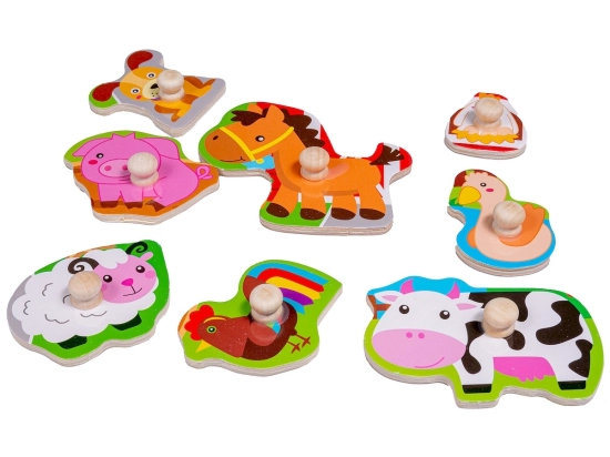 I puzzle in legno con immagini di animali sono ideali per imparare i nomi e l’aspetto degli animali che vivono in campagna.