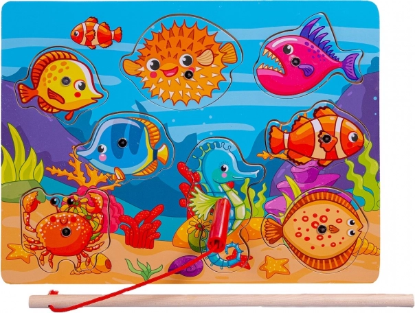Gioco divertente ed educativo per i più piccoli: puzzle magnetico in legno con tema degli animali marini e canna da pesca. Grazie al magnete, i bambini afferrano facilmente i pesciolini e li inseriscono nei punti corretti, sviluppando motricità fine, coordinazione occhio–mano, riconoscimento di forme e colori e capacità di concentrazione. La grafica colorata e allegra cattura l’attenzione e trasforma l’apprendimento in gioco.