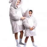 Grande felpa con cappuccio a forma di animaletto che funge da coperta riscaldante realizzata in morbido pile sherpa. Offre massimo comfort per bambini dai 3 ai 6 anni con una grande tasca frontale per riscaldare le mani.