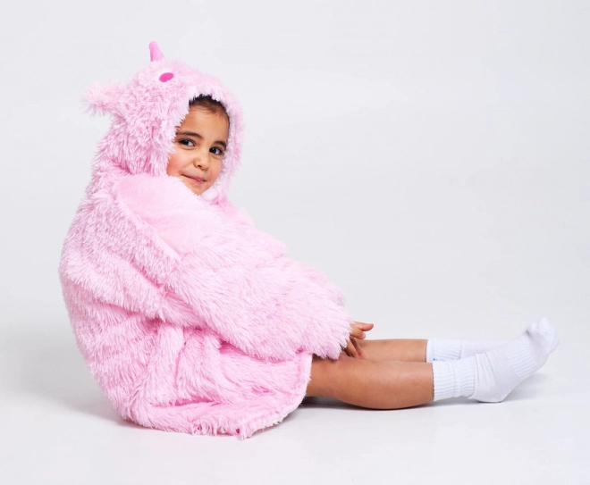 Questa adorabile e pratica coperta-felpa Cozy Noxxiez a tema unicorno tiene al caldo i piccoli avventurieri dai 3 ai 6 anni, in casa e all’aperto. Offre un cappuccio caldo, un’ampia tasca frontale e flanella super morbida con pile sherpa per il massimo calore e comfort. Ideale come coperta da TV con cappuccio per il divano, il gioco e il campeggio.