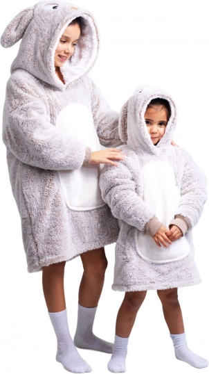 Una coperta-felpa con cappuccio a tema coniglio per bambini 7–12 anni, adorabile e pratica, offre calore e comfort massimi. All'esterno morbida flanella, all'interno soffice pile sherpa. Non manca una tasca frontale gigante per mani e piccoli oggetti e la facile manutenzione – lavaggio a 30 °C. Ideale per relax sul divano, gioco, campeggio e le serate fresche in giardino.