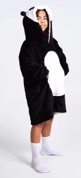 Grande felpa con cappuccio a tema animaletto che funge da coperta caldissima, morbidissima e soffice, capace di riscaldare in ogni occasione e di conquistare i bambini con il suo design giocoso e accattivante. L’interno della felpa è realizzato in caldo e soffice sherpa fleece, mentre l’esterno è in un materiale super morbido e vellutato, utilizzato per produrre le coperte più soffici. Tutte le felpe di questa linea hanno anche una grande tasca frontale in cui scaldare comodamente le mani fredde. Ogni bambino si sentirà sicuramente a proprio agio, sia sul divano a guardare la TV o a riposare, sia mentre gioca, senza alcuna limitazione nei movimenti. È molto pratica anche in campeggio o per altre attività all’aperto, oppure semplicemente per sedersi in giardino quando fa più fresco. Questa felpa-coperta due in uno è un regalo bello e pratico. Nell’offerta Cozy Noxxiez trovi spesso nello stesso design anche un caldo cuscino peluche 3 in 1, una pantofla riscaldante gigante o una coperta con cappuccio con animaletto e tasche a zampetta, così da avere un intero set riscaldante perfettamente coordinato.