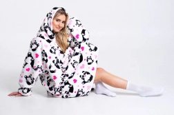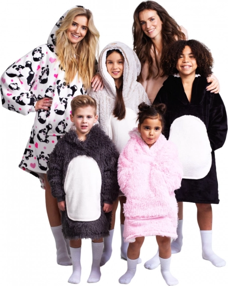 Questa felpa-coperta 2 in 1 è progettata per il comfort quotidiano. Il taglio oversize non limita i movimenti, mentre i materiali morbidi riscaldano piacevolmente. Il motivo panda aggiunge un tocco giocoso e rende la felpa un ottimo regalo per donne e uomini.