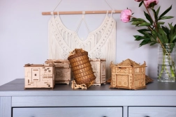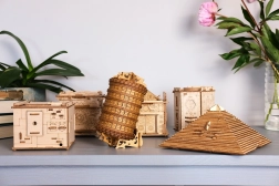 Il corpo in legno elegante con incisioni dettagliate assicura resistenza, un aspetto raffinato e una piacevole sensazione durante la risoluzione del rompicapo.