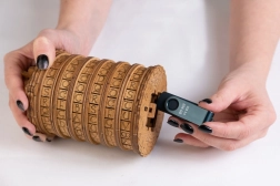 Gli anelli rotanti con lettere permettono di impostare una combinazione personalizzata e trasformare il Cryptex in un ingegnoso nascondiglio per piccoli regali o messaggi segreti.
