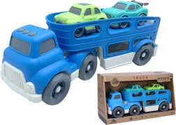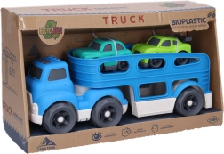 Questo camion per trasporto auto è il giocattolo perfetto per i bambini che amano giocare con le macchinine. Con dimensioni di 30 x 11 x 15 cm offre spazio sufficiente per il trasporto di due macchinine più piccole di 9 cm, che sono incluse nella confezione.