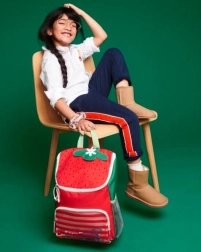 Questo zainetto per bambini unisce il dolce design a fragola a una funzionalità studiata per l'uso quotidiano. L'ampia apertura assicura un facile riempimento e prelievo degli oggetti, mentre la tasca frontale trasparente con zip permette di trovare rapidamente i piccoli accessori. La tasca elastica in rete per la bottiglia mantiene la bevanda sempre a portata di mano.