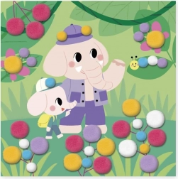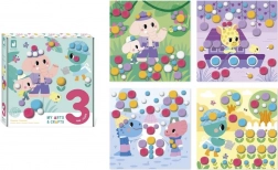 I bambini incollano semplicemente le bambulky del colore e della dimensione corretta sui punti selezionati, secondo istruzioni e contorni colorati nelle immagini. Il completamento di ciascuna immagine richiede circa 20 minuti, ideale per la pazienza e la concentrazione dei bambini piccoli.