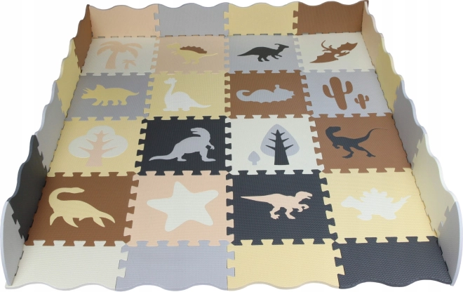 Il tappetino in schiuma per bambini con motivi di dinosauri crea uno spazio di gioco quotidiano sicuro e divertente. Il set include tasselli quadrati, bordi e angoli per una finitura pulita, ha una superficie morbida e lavabile, attenua il rumore e isola dal freddo. I pezzi si assemblano facilmente come un puzzle, hanno una struttura antiscivolo e sono ideali come tappeto da gioco per la cameretta.