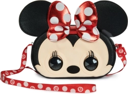 Presentiamo la Borsa Interattiva Minnie Mouse di Disney! Questa borsa unica reagisce al tocco, ammicca, e può persino mandarti un bacio. Realizzata in materiali come eco-pelle e camoscio, è decorata con un caratteristico fiocco rosso a pois bianchi e occhi affascinanti e accattivanti.