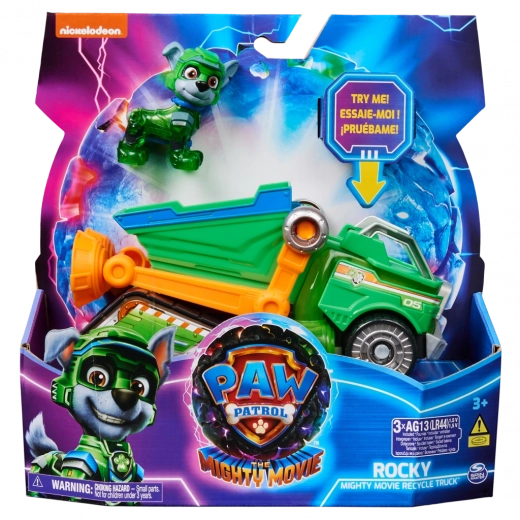Unisciti a Rocky e vivi emozionanti avventure di salvataggio con il suo camion dal film Paw Patrol: Il Superfilm! Questo modello di camion dei rifiuti della Paw Patrol misura oltre 18 centimetri di lunghezza e 10 centimetri di altezza, ha un design super elegante, bracci mobili per i bidoni e appassionanti effetti sonori con luci lampeggianti sincronizzate: un’aggiunta fantastica alla collezione di tutti i fan della Paw Patrol (batterie incluse)! Rocky indossa la sua uniforme verde del film Paw Patrol: Il Superfilm, con parti traslucide e un bellissimo casco. Fai sedere Rocky al posto di guida del suo camion dei rifiuti per attivare l’illuminazione in vari punti del veicolo e guarda come si illuminano le sue zampette, rendendo la missione di salvataggio ancora più avvincente e divertente mentre passi da una missione all’altra con il suo veicolo di soccorso! Con i giocattoli del mondo di Paw Patrol, i bambini possono sviluppare immaginazione e abilità motorie mentre rivivono le loro scene preferite del film. Per missioni ispirate alla serie Paw Patrol ancora più divertenti ed emozionanti, colleziona tutti i giocattoli dei film della Paw Patrol, come la straordinaria portaerei quartier generale, e tutti i giocattoli della speciale edizione Paw Patrol per bambine e bambini, come le action figure e i playset Mighty Pups, Aqua Pups e Big Truck Pups (ognuno venduto separatamente), e goditi infinite avventure con il tuo cagnolino eroico preferito e con il veicolo di soccorso di Rocky dal film Paw Patrol: Il Superfilm!