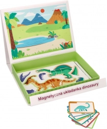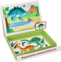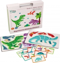 Scopri il puzzle magnetico con dinosauri in una pratica scatola pieghevole con manico, che offre ai bambini un apprendimento creativo e divertente a casa e in viaggio. Il set include 51 pezzi magnetici e 10 carte colorate con specie di dinosauri – ideale per lo sviluppo della motricità fine, della coordinazione occhio–mano e del pensiero logico.