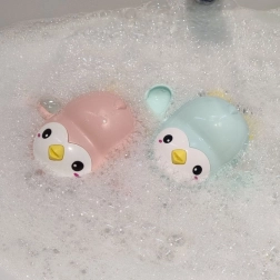 Gira semplicemente il meccanismo e osserva i pinguini nuotare allegramente facendo bollicine: divertimento sicuro e senza fine nella vasca.