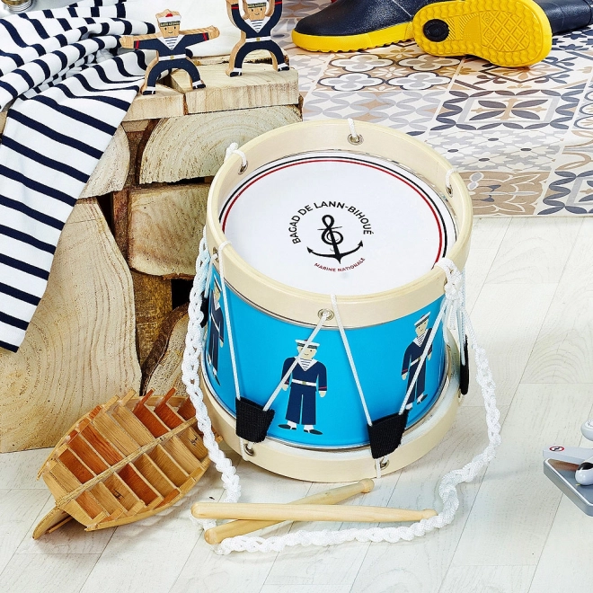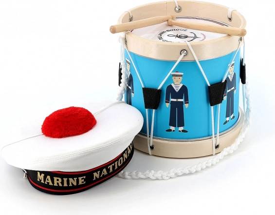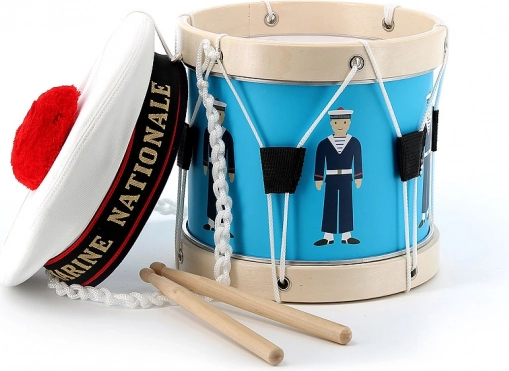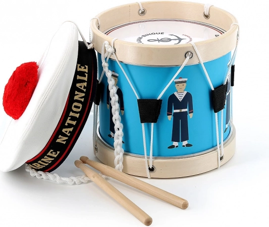 Questo tamburo è nato in collaborazione con la Marina francese, come si riflette nei dettagli autentici e nella qualità della lavorazione. È adatto ai bambini dai 3 anni e, grazie al suono piacevole e alle bacchette ergonomiche, piacerà sia ai principianti sia ai piccoli appassionati di musica.