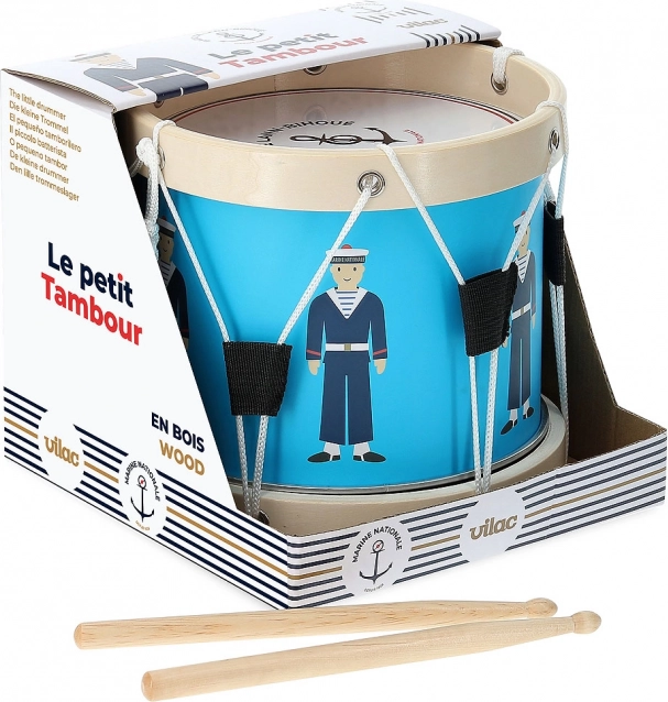 Regalate ai bambini i primi passi musicali con il tamburo VILAC dal design marinaro. I fusti blu con illustrazioni di marinai, i cerchi in legno e la pratica tracolla invitano a esplorare i ritmi. Lo strumento è ideale per sviluppare il senso del tempo, la concentrazione e la collaborazione.