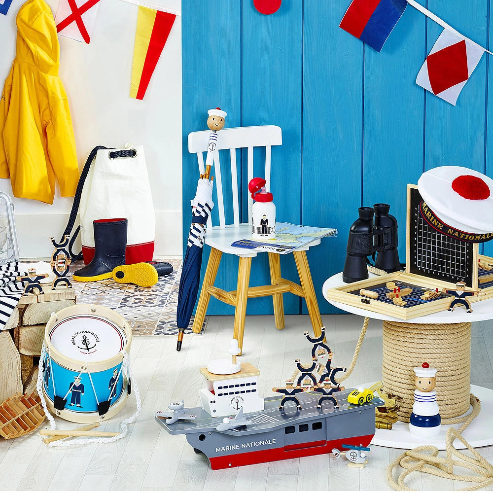 Creato in collaborazione con la Marina francese – illustrazioni originali di marinai e motivi marini stimolano fantasia e gioco.