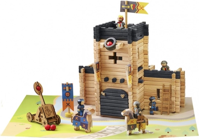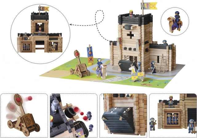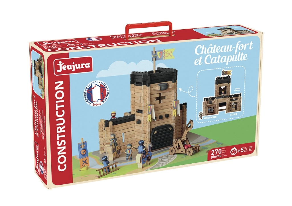 Costruisci il tuo regno medievale con il set di costruzioni in legno JEUJURA. Il set da 270 pezzi in legno massello permette ai bambini di creare un grande castello con ponte levatoio, prigione, camminamenti di guardia, bandiere e una catapulta funzionante. Produzione tradizionale francese, colori a base d’acqua sicuri e pratica confezione in valigetta di cartone rendono questo set un regalo perfetto per piccoli costruttori dai 5 anni in su.