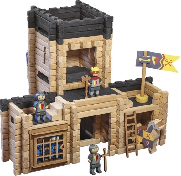 Questo set di costruzioni in legno JEUJURA di alta qualità sviluppa la motricità fine, la creatività e il pensiero logico. I pezzi in legno massello di faggio e pino si incastrano facilmente, così i bambini possono costruire senza sforzo una fortezza con dettagli come ponte levatoio, prigione e camminamenti di guardia. Il gioco è arricchito da figurine di cavalieri, cavalli e una catapulta per storie ricche di azione.