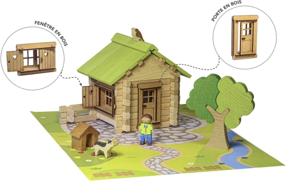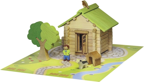 Scopri il fascino delle classiche costruzioni in legno JEUJURA. I pezzi in faggio e pino si incastrano perfettamente e permettono ai bambini di costruire casette realistiche con tetto, porte, finestre e imposte. Inclusa anche una base robusta per un gioco stabile ed esposizione.