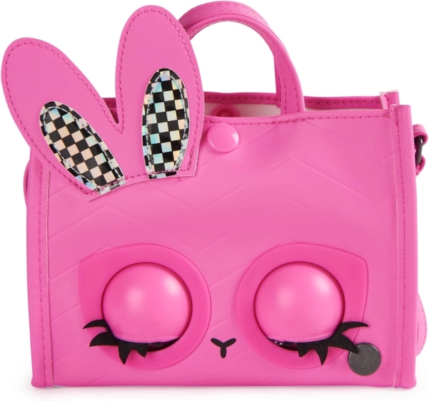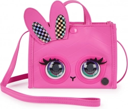 Esprimi il tuo stile con la dolcissima borsetta PURSE PETS Holly Hops in design rosa con occhi pop-art e orecchiette olografiche da coniglio. La borsa reagisce al tocco, con ammiccamenti e suoni, e trasforma ogni outfit in uno show divertente. Grazie alle modalità intelligenti, i bambini possono divertirsi con la danza a ritmo e la gara di fissati.