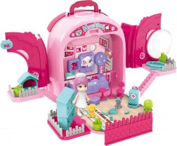 Offri al tuo bambino divertimento in movimento con questo ospedale per animali domestici nello zaino. Lo zaino compatto e facilmente trasportabile include tutte le attrezzature necessarie per prendersi cura del paziente di peluche.