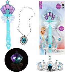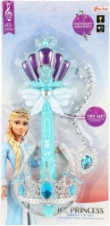 Set di bellezza bacchetta+corona con accessori plastica Principessa di Ghiaccio a batterie con suono e luce su cartoncino 19x43 cm