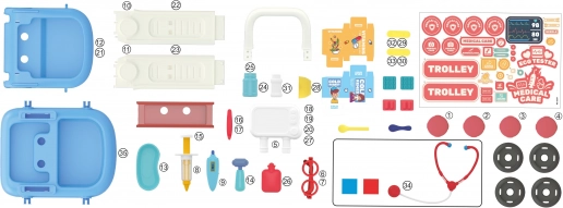 - Include vari strumenti medici che permettono ai bambini di imitare le procedure mediche reali.