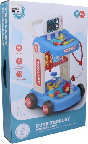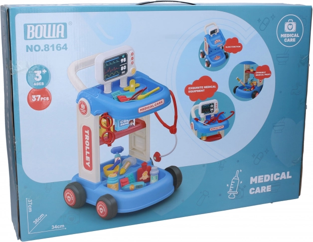 Carrello medico con accessori per piccoli dottori. Ideale per giocare al dottore con dimensioni 34x36x37 cm.